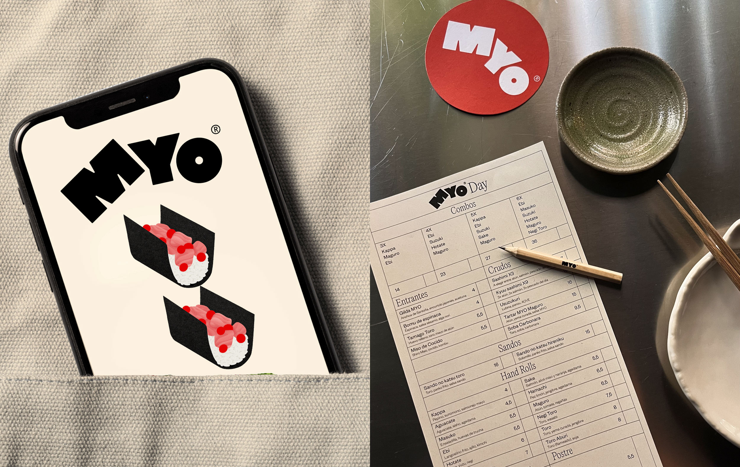 For MYO Hand Roll Bar, a new Asian-inspired restaurant with Mediterranean influences opening in Chamberí (Madrid), we developed the brand strategy, naming, and visual identity.
